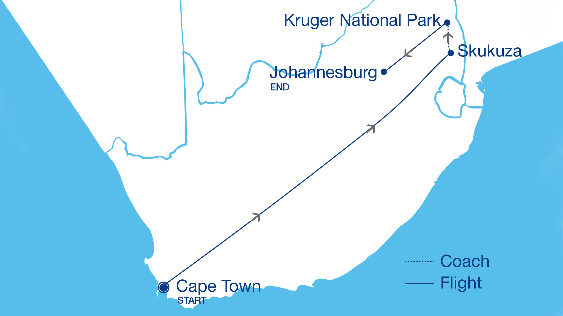 - All domestic flights within South Africa