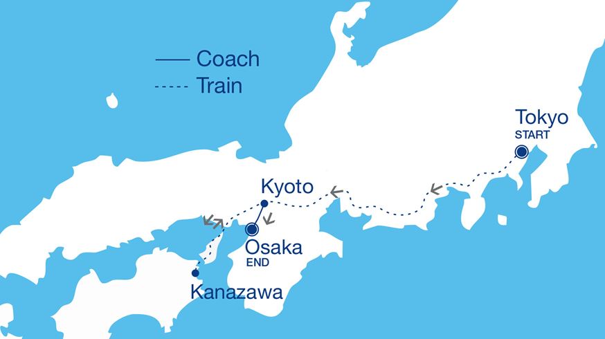 - First-class high-speed train from Tokyo to Kanazawa to Kyoto