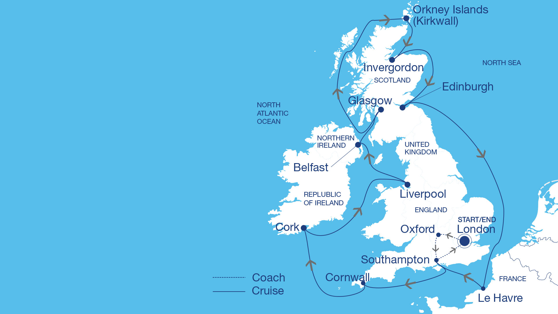 Activity Level: Moderate. Sail and explore the British Isles on a 17-day journey that takes you across England, Ireland, Scotland and France’s iconic ports and landscapes.