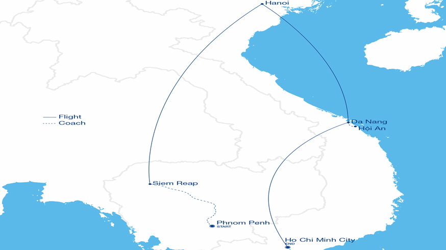 - All domestic flights within Cambodia and Vietnam