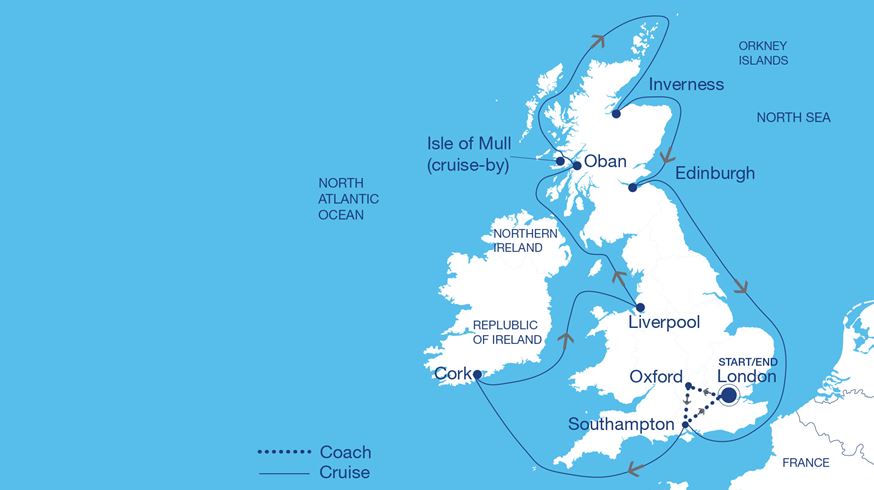 Activity Level: Moderate. Explore the wonders and history of the British Isles, with visits to London to Edinburgh, Inverness, Oban, Cork and more on this 12-night cruise.